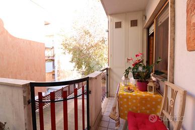 L'immobile è composto da soggiorno con balcone, cucina abitabile con uscita sullo stesso balcone, corridoio, camera matrimoniale con balcone, bagno di servizio finestrato e con armadio a muro, due ampie camerette, di cui una con uscita su balcone, secondo bagno finestrato e con vasca idromassaggio. Completano la proprietà una cantina posta all'ultimo piano del palazzo e un garage di circa 26 mq, posto al piano semi interrato e con rampa di accesso dotata di cancello elettrico carrabile.
