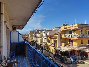 Giardini Naxos, nella frazione di Chianchitta, ben servita da negozi, supermercati e varie attività commerciali, con tutti i servizi di prima necessità, tra cui scuole e fermate di autobus raggiungibili a piedi. La via offre un facile accesso anche allo svincolo autostradale che collega Catania e Messina. La spiaggia e il centro turistico di Naxos distano meno di 2 km. L'immobile si trova in un contesto sia residenziale che commericiale, formato da palazzine, case indipendenti e varie attività locali. L'immobile proposto in vendita si trova al secondo piano senza ascensore di una palazzina costruita negli anni '80 che si sviluppa su tre elevazioni fuori terra e con un prospetto esterno in discreto stato. Il condominio è composto da 9 unità abitative e le spese condominiali consistono in euro 300 annui circa. L'appartamento misura internamente 100 mq netti calpestabili con ingresso su corridoio, da cui si accede ad un'ampia zona cucina/soggiorno open space di 35 mq con un esposizione angolare, fornita da finestra e con uscita su due balconi, uno esposto ad ovest con vista Etna, e l'altro esposto a Nord; a seguire una prima cameretta con uscita sul balcone lato ovest e altre due camere da letto entrambe con uscita su balcone esposto a nord, infine un piccolo ripostiglio, una lavanderia con doccia non finestrata, e un servizio con vasca finestrato. Le condizioni interne sono buone, con impianti elettrico ed idrico originari e funzionanti, pavimento in ceramica chiara, infissi in alluminio monovetro con avvolgibili, sono presenti tre climatizzatori caldo/freddo. Incluso nella vendita un garage di 13 mq al piano sottostrada, comodo essendo che in zona spesso il parcheggio può essere limitato.