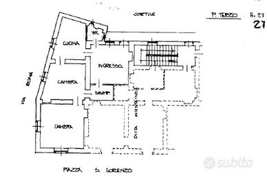 L'immobile, situato al terzo piano del caratteristico edificio, si compone di un ampio ingresso in soggiorno living, una cucina abitabile, un bagno e due camere matrimoniali.