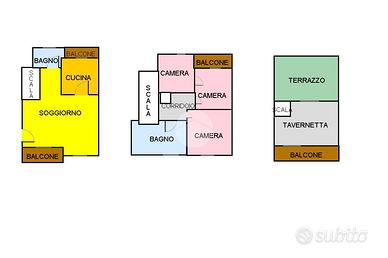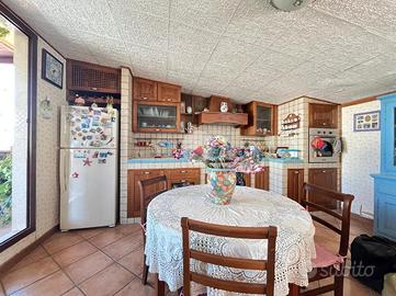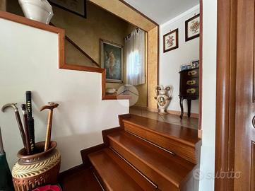 Al primo livello l'immobile presenta la zona giorno con salone, cucina e bagno di servizio, al piano superiore ci sono tre camere da letto e un bagno con doccia e vasca. Tramite una scala a chioccola che troviamo nella zona notte accediamo al terrazzo con depandance, ideale per trascorrere dolci momenti al tramonto o pranzi e cene all' aperto. Gode della giusta privacy in quanto è l' ultimo piano.