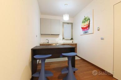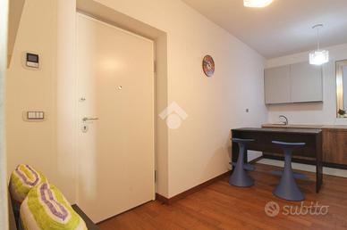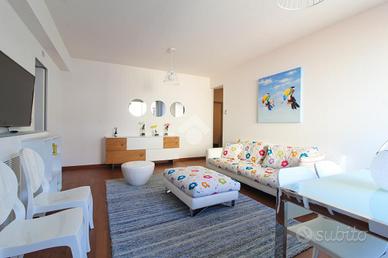 Si presenta con ingresso che separa il soggiorno ampio e luminoso dalla cucina arredata con tavolo snack.
