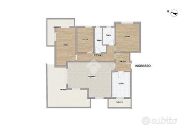 La zona notte comprende una camera matrimoniale e due camere singole, perfette per ospiti o per essere trasformate in uno studio o una cabina armadio. I doppi servizi aggiungono un ulteriore tocco di praticità alla vita quotidiana.