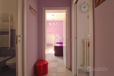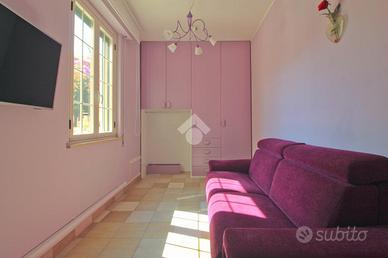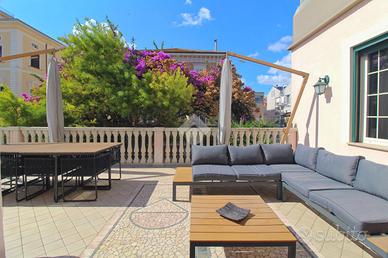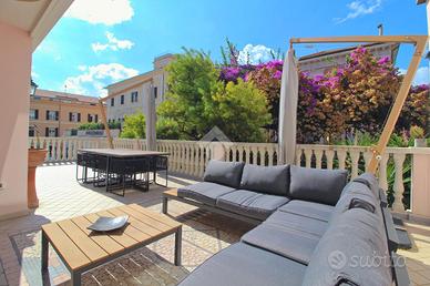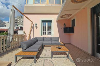 All'ingresso, un accogliente spazio ci conduce a una terrazza unica nel suo genere, arredata con un comodo divano, un tavolo e una zona lavanderia. Gli affreschi che adornano la terrazza rappresentano il vero punto di forza di questa dimora, offrendo un tocco artistico che arricchisce l'intero appartamento.