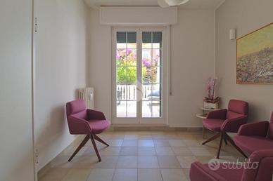 L'appartamento, completamente ristrutturato, si trova al primo piano di uno stabile che non prevede spese di condominio, con un riammodernamento esterno effettuato nel 2015 e una ristrutturazione interna nel 2009. Grazie alla sua esposizione libera su tutti i lati, la luce naturale inonda gli spazi, creando un ambiente accogliente e luminoso, attualmente adibito a studio professionale.