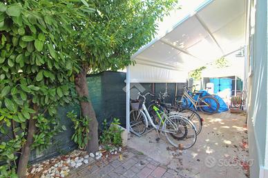 L'area condominiale è recintata e offre uno spazio coperto per la rimessa di biciclette, ideale per chi ama spostarsi in modo ecologico e pratico.