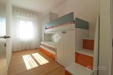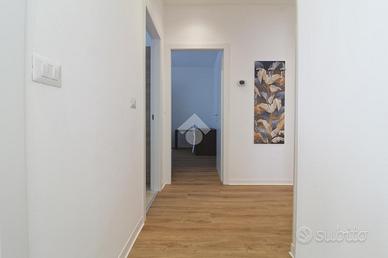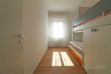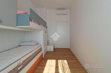 Il corridoio conduce alla zona notte, composta da tre camere da letto: due matrimoniali, ognuna con il proprio balcone, e una singola arredata con letto a castello e letto estraibile. La zona notte è completata da doppi servizi, uno finestrato e l'altro cieco, entrambi dotati di doccia.