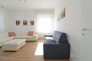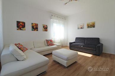 Con una generosa metratura, l'appartamento offre un ingresso che separa il soggiorno, dotato di divano letto, dalla cucina abitabile. La cucina è servita da un balcone con lavabo, perfetto per chi ama cucinare.
