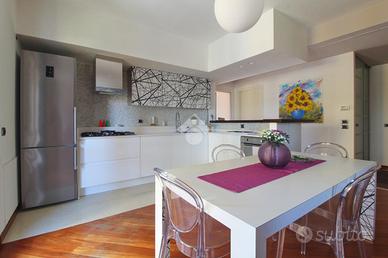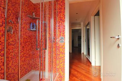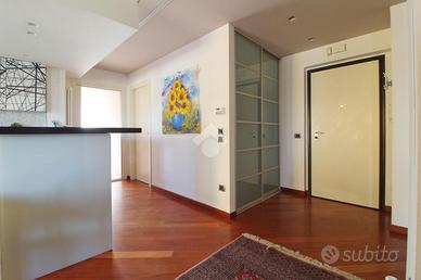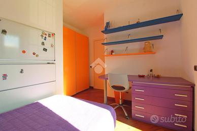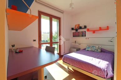 La zona notte comprende tre confortevoli camere da letto, perfette per accogliere famiglie numerose o per chi desidera avere uno spazio da dedicare agli ospiti o ad un ufficio domestico. Due di queste camere offrono balconi privati. L'appartamento dispone inoltre di due bagni, entrambi finestrati, che aggiungono ulteriore comodità e praticità alla vita quotidiana.