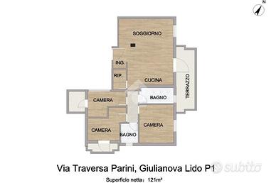 Situato a Giulianova Lido, precisamente in Traversa Parini. Questo immobile si trova al primo piano di una palazzina moderna, costruita nel 2004, dotata di ascensore per facilitare l'accesso ad ogni piano.