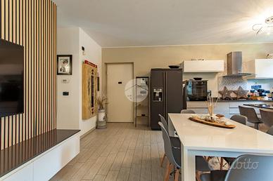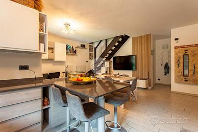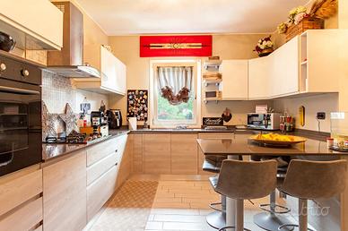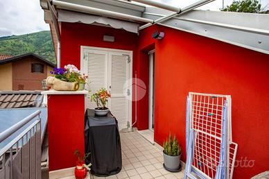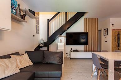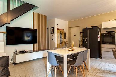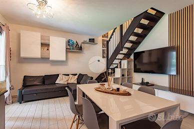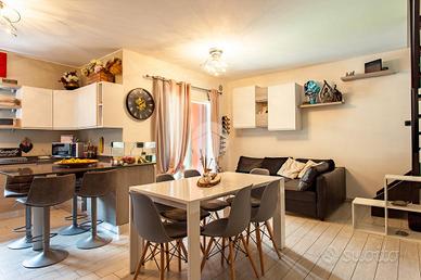 In zona tranquilla e soleggiata appartamento su due livelli abitativi di recente costruzione, dotato di riscaldamento a pavimento e pannelli solari.