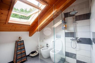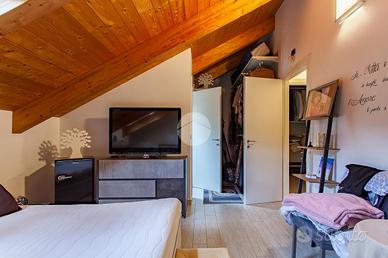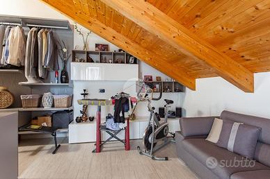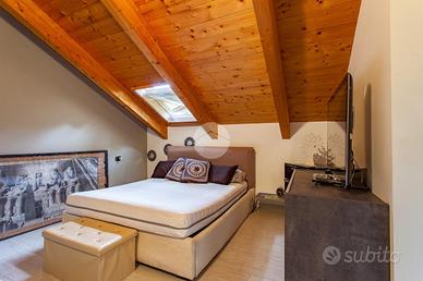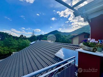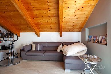 Dal comodo vano scala interno, si accede al piano superiore mansardato composto da due comode camere da letto provviste di servizi entrambi con doccia, ed il terrazzo da cui godere di una splendida vista panoramica sulle montagne circostanti.