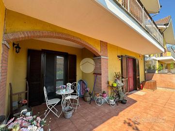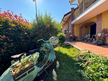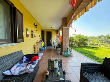 Soluzione di recente costruzione, ideale per chi cerca comfort e spazi esterni vivibili. L'appartamento, posto al piano terra, è valorizzato da due giardini di generosa metratura, ottimamente esposti e perfettamente fruibili durante tutto l'arco della giornata. L'ingresso conduce direttamente alla luminosa zona living con cucina a vista, ambiente accogliente e ben organizzato. Un disimpegno centrale distribuisce gli spazi della zona notte, dove troviamo una comoda camera da letto e un bagno finestrato dotato di box doccia. Attraverso una scala interna si accede alla tavernetta di generosa metratura, uno spazio versatile e ben rifinito, la cameretta, ideale come area relax, studio o zona ospiti. Dalla taverna si accede direttamente al comodo box auto doppio, garantendo massima praticità e funzionalità.