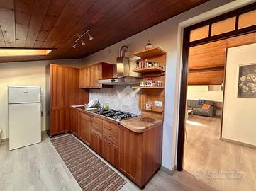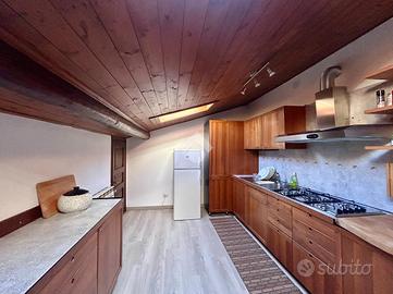 L'ingresso si apre su un disimpegno che separa gli spazi interni. L'ampio soggiorno con sala da pranzo è ideale per momenti di relax e convivialità, mentre la cucina separata offre uno spazio funzionale e luminoso grazie ai velux che garantiscono luce naturale tutto il giorno.