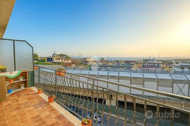 Gravina di Catania, a ridosso del centro commerciale Katané e degli svincoli autostradali. Appartamento di 95 mq posto al quarto piano di uno stabile munito di ascensore. Internamente in buono stato, si compone di un'ampia zona giorno all'ingresso in openspace, due camere da letto matrimoniali, doppi servizi e ripostiglio. Gli ambienti sono luminosi e ben distribuiti e godono della vista panoramica sul mare. Ad impreziosire questa soluzione vi è il terrazzo sovrastante di pari metratura con annessa stanza di 14 mq. Le condizioni esterne dello stabile sono discrete.