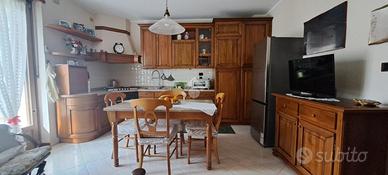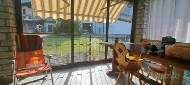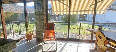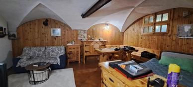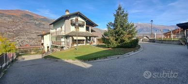 Gressan, frazione Surpillod. In primissima collina, zona servita e nel contempo immersa nel verde, proponiamo in esclusiva splendida porzione di villa, disposta su 2 livelli e con giardino. Ingresso da cancello automatizzato in ampio verde diviso equamente tra due diverse abitazioni, la porzione in oggetto presenta un ingresso carraio dal garage con piccolo bagnetto di servizio, deposito, locale caldaia alimentata a gasolio, stanza di passaggio con cucina, taverna molto caratteristica ed altro vano ad uso ufficio con scala d'accesso ad un'ampia cantina ottima per i vini e altra cantina interrata con caratteristiche volte in pietra (molto alta); al piano terra, collegato dall'interno, troviamo l'ingresso principale molto ampio, una cucina abitabile con balcone su tutto il lato ovest della casa con splendida vista sulle montagne, salone con caminetto a legna e grande veranda a sud, ci sono poi la camera matrimoniale di generose dimesioni ed un ampio bagno finestrato dotato di comoda doccia. Con prezzo a parte, si possono abbinare un altro appartamentino con cucina, camera, bagno e studio in una struttura a sé, compreso di autorimessa con soppalco, giardinetto privato e ampia tettoia esterna al prezzo di € 120.000,00, oltre a 2 ampie autorimesse con porta basculante e magazzino per € 60.000,00.