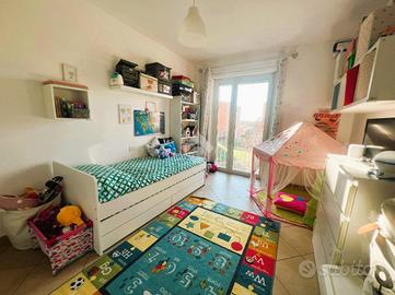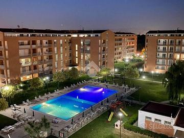 Proponiamo in vendita luminoso appartamento di 4 vani situato all'interno del rinomato Parco Oleandri, nel comune di Gricignano di Aversa, in contesto condominiale tenuto alla perfezione, curato in ogni sua parte e servito da ascensore. L'immobile si apre su un accogliente ingresso che conduce all'ampio salone, reso particolarmente luminoso grazie all'accesso diretto al terrazzo, la cucina è separata da un'elegante porta a scrigno ed è servita da comodo balcone, garantendo funzionalità e comfort nella vita quotidiana. Un pratico disimpegno accompagna alla zona notte, dove troviamo una cameretta, due spaziose camere matrimoniali, un bagno con vasca, un ripostiglio ad uso lavanderia e un secondo bagno con doccia. Fiore all'occhiello del parco è la splendida piscina condominiale, che durante il periodo estivo rappresenta un vero valore aggiunto: uno spazio esclusivo dove rilassarsi e godersi le belle giornate senza allontanarsi da casa. Completa la soluzione un box auto privato con serranda, ideale per assicurare comodità e sicurezza. Una soluzione perfetta per chi desidera vivere in un contesto signorile, tranquillo e ricco di comfort, con spazi ampi, luminosi e servizi esclusivi.