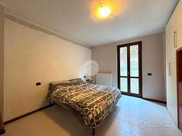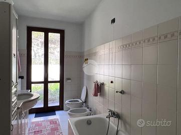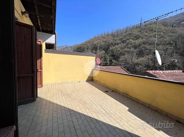 L'appartamento quadrilocale si colloca in zona pedecollinare, la soluzione ideale per tutti gli amanti della tranquillità, del verde e della natura, senza per questo dover rinunciare alla comodità dei servizi principali, distanti pochi minuti. La proposta immobiliare, inserita in un contesto condominiale, si sviluppa terra-cielo su tre livelli ed occupa una superficie totale di circa 160 mq. L'accesso all'abitazione avviene tramite un'agevole scalinata comune che parte dal piano terra ed arriva all' appartamento così sviluppato: - piano primo : ingresso strutturato in un primo locale finestrato, adibito a studio, e collegato ad un ambiente ospitante la caldaia e gli attacchi per la lavatrice, quindi ottimo per essere convertito in lavanderia. - piano secondo : una scala interna conduce alla zona giorno composta da un'ampia area living open space di circa 60 mq valorizzata dall'accesso esterno alla terrazza privata di 20 mq con affaccio sul verde comune. A completare il piano un comodo ripostiglio ed un servizio igienico finestrato con box doccia. - piano terzo : accoglie la zona notte, distribuita in una camera matrimoniale, due camere singole ed un secondo servizio finestrato con vasca e portafinestra. La camera padronale ed il bagno godono dell'accesso diretto ad un ulteriore sfogo esterno, un piccolo giardinetto piastrellato affacciato sul versante collinare. Internamente l'appartamento si presenta abitabile sebbene allo stato originario di costruzione. Gli infissi sono in legno con doppi vetri e la pavimentazione è in gres. Il riscaldamento è autonomo con caldaia e la propagazione del calore avviene attraverso radiatori. E' presente un box auto singolo. I costi di gestione annuali dell'immobile ammontano a circa 900 Euro annui e comprendono spese di amministrazione, assicurazione condominiale, luce condominiale, pulizia e manutenzione delle scale e dei vani comuni. Per gli amanti della natura, si aggiunge alla soluzione la presenza di un appezzamento