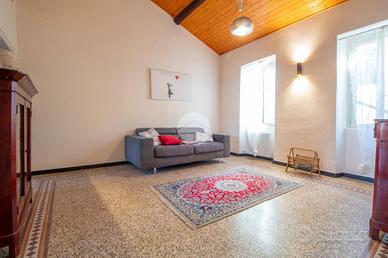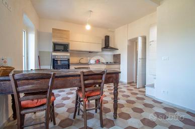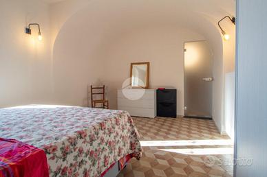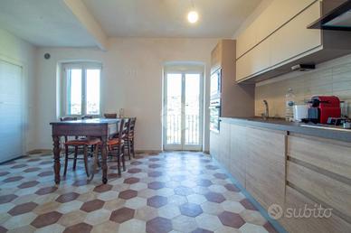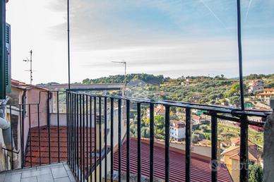 Nel caratteristico borgo liguredi Artallo, tra i suggestivi carrugi del paese, si trova questo affascinante appartamento al primo piano, recentemente ristrutturato in modo conservativo per mantenere intatto il fascino autentico delle case liguri. L'ingresso si apre su una spaziosa sala con pavimento tipico, soffitti alti e una parete in pietra a vista, elementi che raccontano la storia e l'anima rustica dell'abitazione. Proseguendo, si trova la cucina, dotata di uscita sul balcone e collegamento diretto al terrazzo tramite una comoda scala interna. Il terrazzo, ampio e coperto, è un vero e proprio spazio da vivere, ideale per momenti di relax o cene all'aperto con vista mare. La zona notte comprende due camere da letto - una matrimoniale e una singola - oltre a un bagno finestrato completo di doccia. L'appartamento si trova in una zona tranquilla e soleggiata, a pochi minuti dal centro di Porto Maurizio, dalle spiagge e da tutti i servizi principali. Un perfetto connubio tra autenticità, comfort e posizione, per chi desidera vivere o trascorrere le vacanze immerso nell'atmosfera tipica della Liguria.