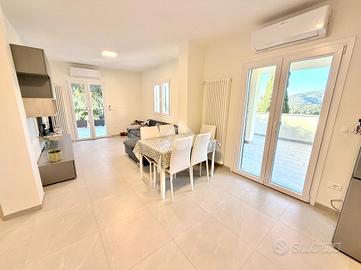 Nella prima collina di Imperia, in Località Poggi, a pochi minuti dalle spiagge e dalla pista ciclabile che collega San Lorenzo al mare con Ospedaletti, vi proponiamo questo appartamento in villa.