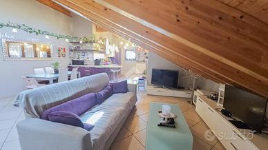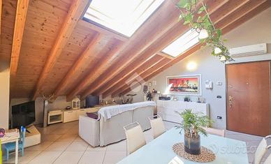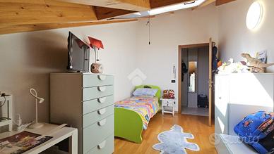 Questa spaziosa soluzione di quattro locali si trova nel comune di Induno Olona, a pochi minuti da Varese. La mansarda, situata al secondo piano senza ascensore, vanta una metratura generosa e travi a vista che conferiscono eleganza e calore all'ambiente, creando un'atmosfera accogliente e raffinata. La zona giorno è un invitante open space, con una cucina moderna a vista sul soggiorno, arricchita da un delizioso terrazzino perfetto per momenti di relax e convivialità all'aperto. La zona notte comprende un bagno con doccia, due confortevoli camere singole e una spaziosa camera matrimoniale. Quest'ultima è impreziosita da un proprio terrazzino e un elegante bagno privato con vasca, offrendo un angolo di tranquillità unico e intimo. Inoltre, l'immobile è dotato di zanzariere su tutte le finestre, tende da sole e oscuranti elettrici sui Velux, oltre a un condizionatore, che assicurano un comfort in ogni stagione. Questi elementi garantiscono non solo il massimo benessere termico, ma anche la possibilità di regolare la luminosità e proteggere la privacy. Completano la proprietà un pratico box auto, un posto auto scoperto privato e una cantina, garantendo ampio spazio per tutte le necessità di stoccaggio e parcheggio. Questa proprietà rappresenta la scelta ideale per chi desidera comfort e tranquillità in una posizione strategica che permette di raggiungere in pochi minuti tutti i principali servizi