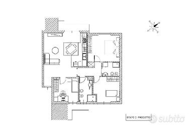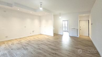 Entrando nel soggiorno, si è accolti da uno spazio ampio e arioso, dove la cucina a vista si integra armoniosamente, creando un ambiente perfetto per la convivialità e il relax. Dalla zona giorno si accede a uno dei due balconi, ideale per godersi momenti all'aperto.
