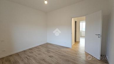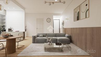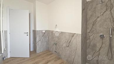 Completano l'appartamento dettagli di qualità come pavimenti in gres porcellanato effetto legno che conferiscono calore e accoglienza, porte interne bianche pantografate con finitura laccata, e serramenti esterni in PVC con avvolgibili motorizzati. Gli impianti tecnologici sono all'avanguardia, con predisposizione per l'aria condizionata, riscaldamento a termosifoni e un sistema di scaldabagno elettrico con collegamento Wi-Fi, assicurando un elevato livello di efficienza energetica e comfort abitativo.