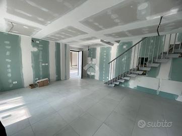 Quattrolocali di 162 mq su due livelli, al piano primo ingresso soggiorno, cucina abitabile, terrazzo loggiato, camera matrimoniale, bagno con doccia; al piano sottostante collegato tramite comoda scala interna, altri due locali e locale tecnico e porticato esterno.