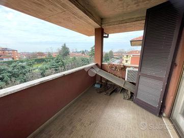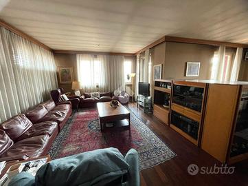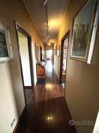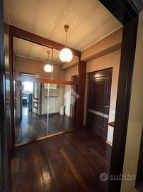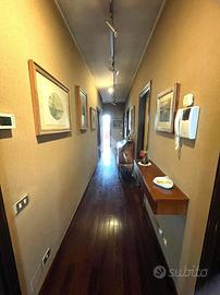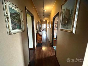 Ingresso in ampia anticamera, salone doppio con terrazzo e balcone, cucina abitabile, doppi servizi di cui uno con balcone,ampio ripostiglio, tre camere da letto di cui una matrimoniale con balcone.