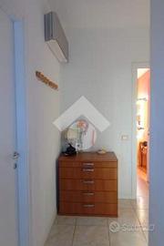 Internamente presenta spazi generosi e risulta composto dal living di ca 35 mq, con accesso a un primo terrazzo, disimpegno che conduce alla zona notte, composta da due camere singole e matrimoniale, travata a vista e con accesso al secondo terrazzo, bagno cieco con lavanderia e bagno principale.