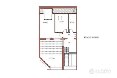 * Piano secondo: zona giorno di circa 37 mq, camera matrimoniale e bagno.