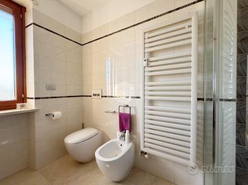 A rendere l'abitazione ancora più confortevole contribuiscono i doppi servizi, un pratico ripostiglio e la presenza di condizionatori in ogni stanza. Tutti gli infissi sono inoltre dotati di tapparelle elettriche e zanzariere, garantendo comfort e funzionalità in ogni stagione.