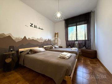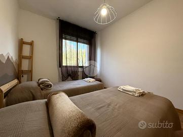 La zona notte comprende due camere da letto, di cui una matrimoniale e una singola, e doppi servizi.