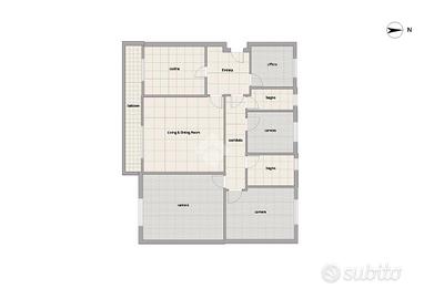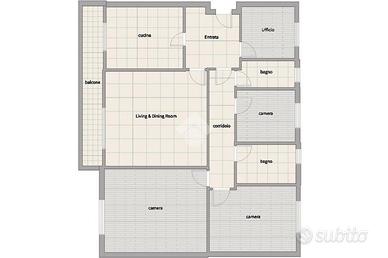 L'immobile si distingue per gli spazi generosi e la distribuzione funzionale degli ambienti. L'ingresso, ampio e accogliente, separa la zona giorno dalla zona notte. É composta da soggiorno e cucina indipendenti, oltre a uno studio finestrato.