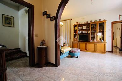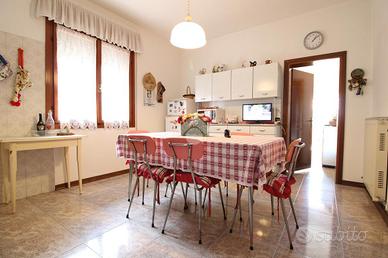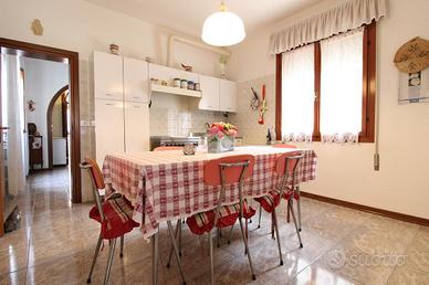 Nel cuore di Cortellazzo proponiamo in vendita una bifamiliare degli anni '70 sviluppata su due livelli, circondata da un ampio giardino privato di circa 3.000 mq, ideale per chi desidera vivere a contatto con la natura senza rinunciare alla vicinanza ai servizi e al mare. L'accesso alla proprietà avviene tramite un cancelletto pedonale oppure attraverso il cancello carrabile automatico. Varcata la porta d'ingresso, si viene accolti da un luminoso disimpegno che introduce agli ambienti della casa. Da qui, una seconda porta conduce al soggiorno, caratterizzato da un affascinante muro ad arco che dona personalità all'ambiente e ospita una stufa, creando un'atmosfera calda e accogliente. Proseguendo nella zona giorno si trova la cucina indipendente, funzionale e ben distribuita. Attraverso un'ulteriore porta si accede alla zona lavanderia, dove è presente un locale dedicato, un bagno finestrato con box doccia e due uscite: una conduce direttamente al garage, mentre l'altra porta alla parte retrostante della proprietà. Qui si apre uno spazio esterno ben organizzato, con giardino, casetta per gli attrezzi, un posto auto coperto e la possibilità di parcheggiare comodamente fino a quattro auto all'interno della proprietà. Tornando al disimpegno che separa la zona notte al piano terra, troviamo un ulteriore bagno finestrato, che si presta anche a essere utilizzato come pratica mini lavanderia. Salendo le scale si raggiunge il piano superiore, dove si sviluppa la zona notte composta da tre camere matrimoniali, ampie e luminose. Una di queste è impreziosita da una veranda che crea un ambiente separato e particolarmente luminoso, ideale come studio o area relax. Due camere dispongono inoltre di balcone privato, offrendo ulteriori spazi esterni da vivere in totale tranquillità. Questa soluzione rappresenta un'ottima opportunità per chi è alla ricerca di una casa spaziosa, indipendente e immersa in un contesto sereno, a pochi passi dal mare, con ampi spazi esterni e tutta l
