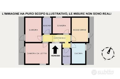 La soluzione si compone di ingressodisimpegno, soggiorno, cucina separata, tre camere matrimoniali e doppi servizi, uno con vasca ed uno con doccia ma entrambi finestrati.