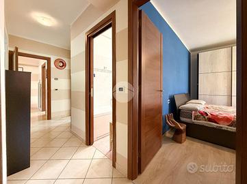 La zona notte è composta da tre camere da letto -- due matrimoniali, entrambe con balcone privato, e una singola -- oltre a due bagni finestrati, uno con vasca e l'altro con doccia.
