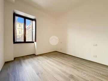 Un disimpegno conduce alla zona notte, composta da tre camere da letto, di cui una dotata di ingresso secondario indipendente su Via Dei Neri, ideale per ospiti, studio professionale o per garantire massima privacy. Presenti inoltre due bagni completi, entrambi con doccia e sistema di aspirazione.