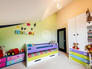 L'immobile è rifinito in ogni dettaglio, con l'inserimento delle tende da sole, l'antifurto e l'impianto di climatizzazione che permette di mantenere una temperatura ideale in ogni stagione. Completa la proprietà un box auto doppio, incluso nel prezzo, che offre spazio sufficiente per due veicoli e, una cantina, utile per lo stoccaggio di oggetti e attrezzature.