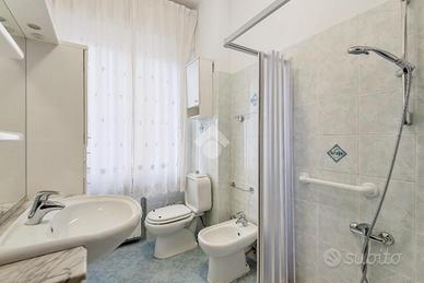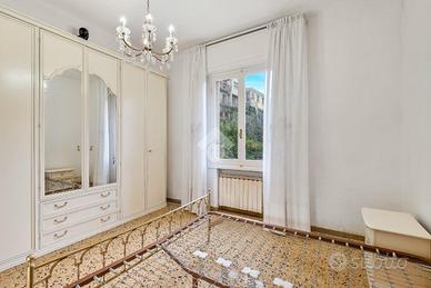 La zona notte si compone invece di due camere matrimoniali, di cui una con balcone e accesso allo sfogo esterno e di un bagno con finestra e box doccia.