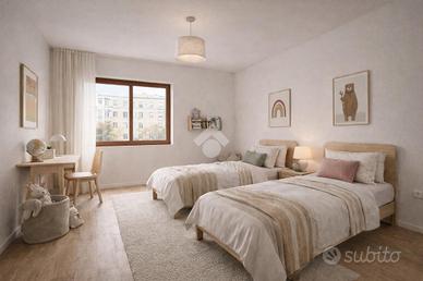 La zona notte comprende due camere da letto, adatte sia a un nucleo familiare sia a chi necessita di una stanza aggiuntiva per studio o ospiti. Il bagno, preceduto da antibagno, risulta comodo e ben organizzato.