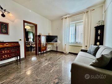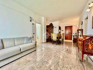 Nel cuore del paese, a pochi passi dal mare e comodo a tutti i servizi, ampio appartamento con balcone vista mare.