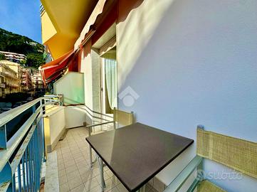 L'ingresso si apre su una luminosa e spaziosa zona giorno, collegata alla cucina abitabile con accesso al primo balcone esposto a nord. La zona notte è composta da due camere matrimoniali di generose dimensioni, di cui una con affaccio sul secondo balcone vista mare. Completa la proprietà un bagno finestrato dotato di vasca con box doccia.