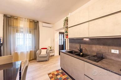 L'appartamento si distingue per gli ambienti generosi e ben distribuiti. L'ingresso si apre su un luminoso soggiorno con cucina a vista, ideale per chi ama gli spazi aperti e conviviali. A servizio della zona giorno troviamo un bagno finestrato e una lavanderia, attualmente utilizzata come locale di servizio ma con la concreta possibilità di essere trasformata in una cucina abitabile, offrendo così una maggiore flessibilità nella gestione degli spazi.