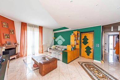 Proponiamo in vendita un elegante appartamento quattro locali situato al primo ed ultimo piano, inserito in un raffinato contesto di villa circondata dal verde, ideale per chi desidera tranquillità senza rinunciare alla comodità dei principali servizi facilmente raggiungibili. L'ingresso conduce alla luminosa zona giorno, composta da un ampio soggiorno e da una cucina abitabile separata, entrambi caratterizzati da spazi ben distribuiti e funzionali. Da questi ambienti si accede direttamente a un piacevole terrazzo, perfetto per momenti di relax all'aperto o per pranzi e cene in compagnia, oltre alla presenza di un comodo balcone. Completa la zona giorno un pratico bagno di servizio. La zona notte, ben distinta, offre tre spaziose camere da letto, pensate per garantire comfort e privacy. La camera matrimoniale dispone di un proprio bagno en suite, elemento che conferisce esclusività e funzionalità all'immobile. Una delle camerette gode inoltre dell'accesso a un terrazzo condiviso, mentre un'altra è dotata di balcone privato, offrendo così ulteriori sfoghi esterni e luminosità naturale. La terza camera si distingue per la sua generosa metratura e l'ottima esposizione. L'immobile si presenta come una soluzione ideale per famiglie numerose o per chi ricerca ambienti ampi e ben organizzati, in un contesto riservato e immerso nel verde. A completare la proprietà troviamo un box singolo incluso nel prezzo, oltre alla possibilità di acquistare un secondo box singolo al costo di euro 15.000. Una proposta abitativa completa, che unisce comfort, eleganza e praticità in una location di grande interesse. Le informazioni contenute sono puramente indicative e non costituiscono elementi contrattuali. Per appuntamenti i nostri incaricati sono disponibili dal lunedì al venerdì dalle ore 9.00 alle 12.30 e dalle 14.30 alle 20.00 e il sabato dalle 9.00 alle 12.30 e dalle 14:30 alle 18:00. a vostra disposizione uno staff di consulenza creditizia in grado di proporvi il mutuo o