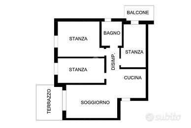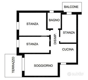 L'immobile, usato in buone condizioni, presenta una disposizione funzionale degli spazi: due camere da letto, una cucina abitabile, un soggiorno luminoso, due bagni, un comodo ripostiglio e due balconi con piacevoli affacci riservati.