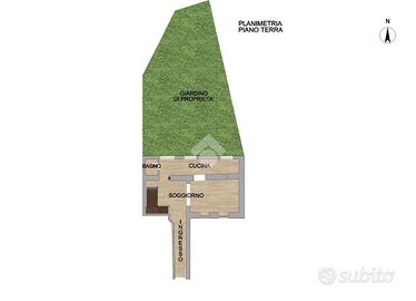 L'ingresso al piano terra conduce in una luminosa zona giorno, dove il soggiorno con camino crea un'atmosfera intima e accogliente, perfetta per momenti di relax o per condividere serate speciali. La cucina moderna, curata nei dettagli, dialoga armoniosamente con gli spazi, mentre il bagno con doccia completa il piano con praticità ed eleganza. Da qui si accede direttamente al giardino di proprietà, un angolo verde riservato dove godersi la tranquillità in pieno centro.
