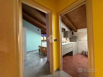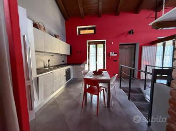 LANZO T.se: nel centro del paese, in stabile ristrutturato nel 2017, alloggio all'ultimo piano con rifiniture rustiche con travi in legno e mattoni a vista.