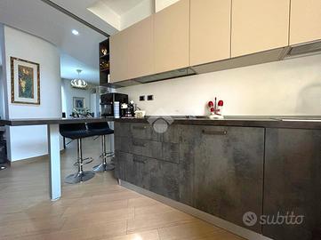 L'ingresso, dotato di un comodo guardaroba a muro, si apre sulla zona living ampia e luminosa, con accesso diretto al balcone. La cucina angolare, semi a vista, è ben integrata ma può essere separata tramite una raffinata vetrata scorrevole, offrendo così flessibilità e stile. Anche la cucina dispone di un secondo balcone.