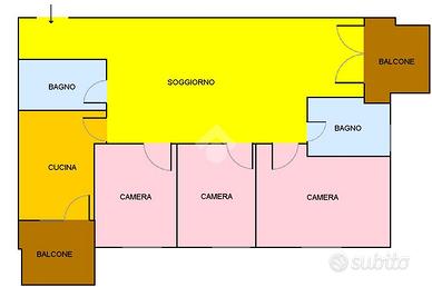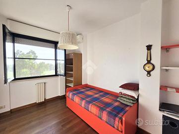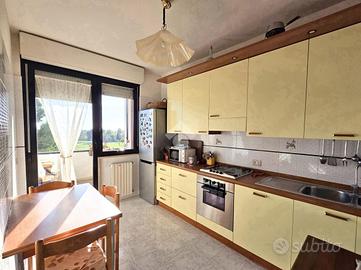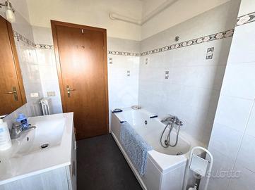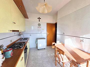 La cucina anch'essa esposta a sud è abitabile e dotata di un comodo balcone di servizio e con due pareti completamente libere da la possibilità di allestire un importante angolo cottura. Completano l'appartamento due bagni uno con la doccia e l'altro con la vasca.