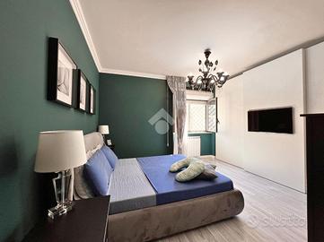 Proseguendo si raggiunge la zona notte dove trovano spazio le tre camere da letto, una delle quali ha anch'essa accesso sul balcone principale, e i due bagni, uno dotato di vasca e l'altro con doccia, entrambi finestrati.